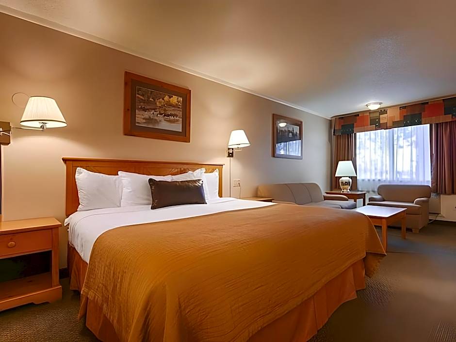 Поїсти можна в Cowboy Buffet and SteakRoom — сімейному американському закладі, який дає відчуття затишку після дня на стежках. Для шукачів гострих відчуттів на місці доступна оренда лиж та катання на лижах, а серед внутрішніх розваг — безкоштовний критий басейн, спа-ванна та джакузі, а також надійний Wi‑Fi. Бізнес-мандрівникам сподобаються зали для зустрічей/банкетів, бізнес-центр та екскурсійне бюро для планування пригод або зустрічей.
